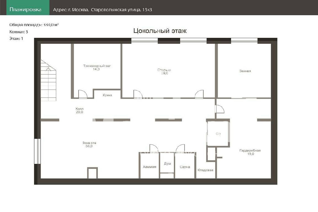 Общая: 330 м2