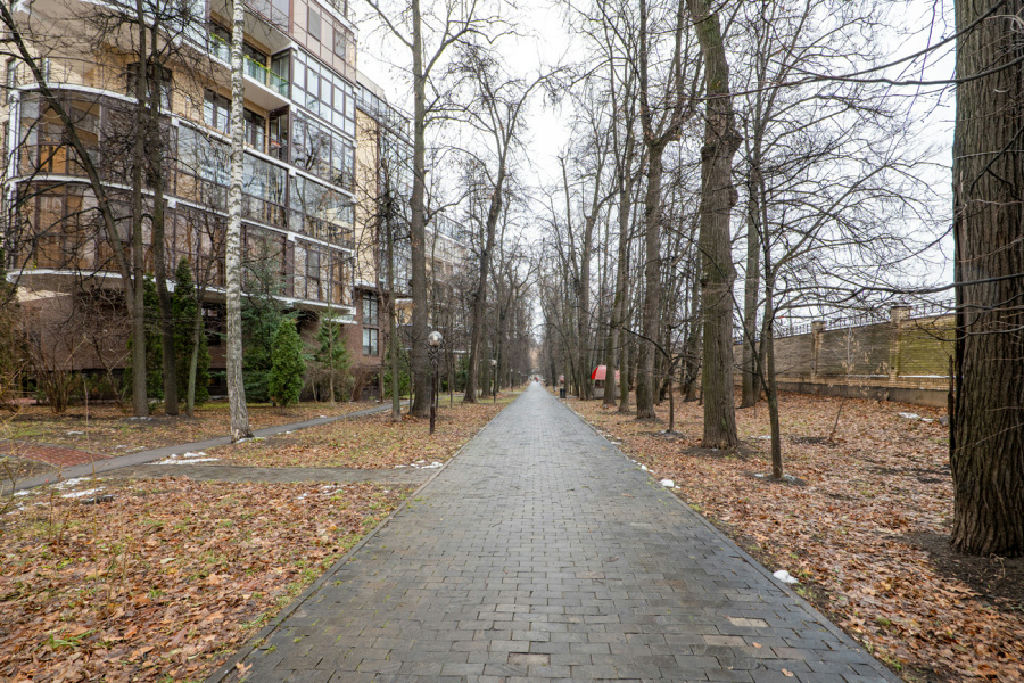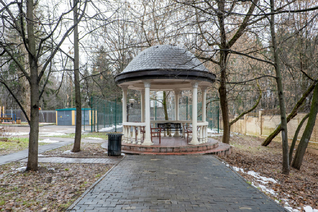 Просторная зелёная территория: Липовая аллея и отдельная площадка для прогулок с собаками, беседки и детские площадки.